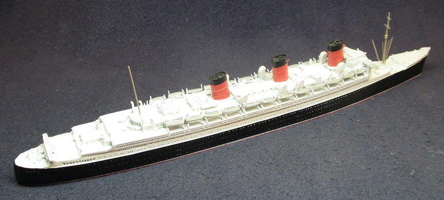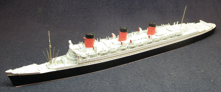 - Service: Built for Cunard-White Star Line. Laid down 27 Dec 1930, but construction halted the following Dec because of the Depression. Work recommenced Apr 1934; launched by HM Queen Mary 26 Sep. Last three-funnel passenger liner. Maiden voyage 27 May 1936 Southampton-Cherbourg-New York. Took the Blue Riband from Normandie in Aug 1936 with a record run of 30.14 knots westbound (Bishops Rock to Ambrose) and 30.63 knots on the return eastbound.
